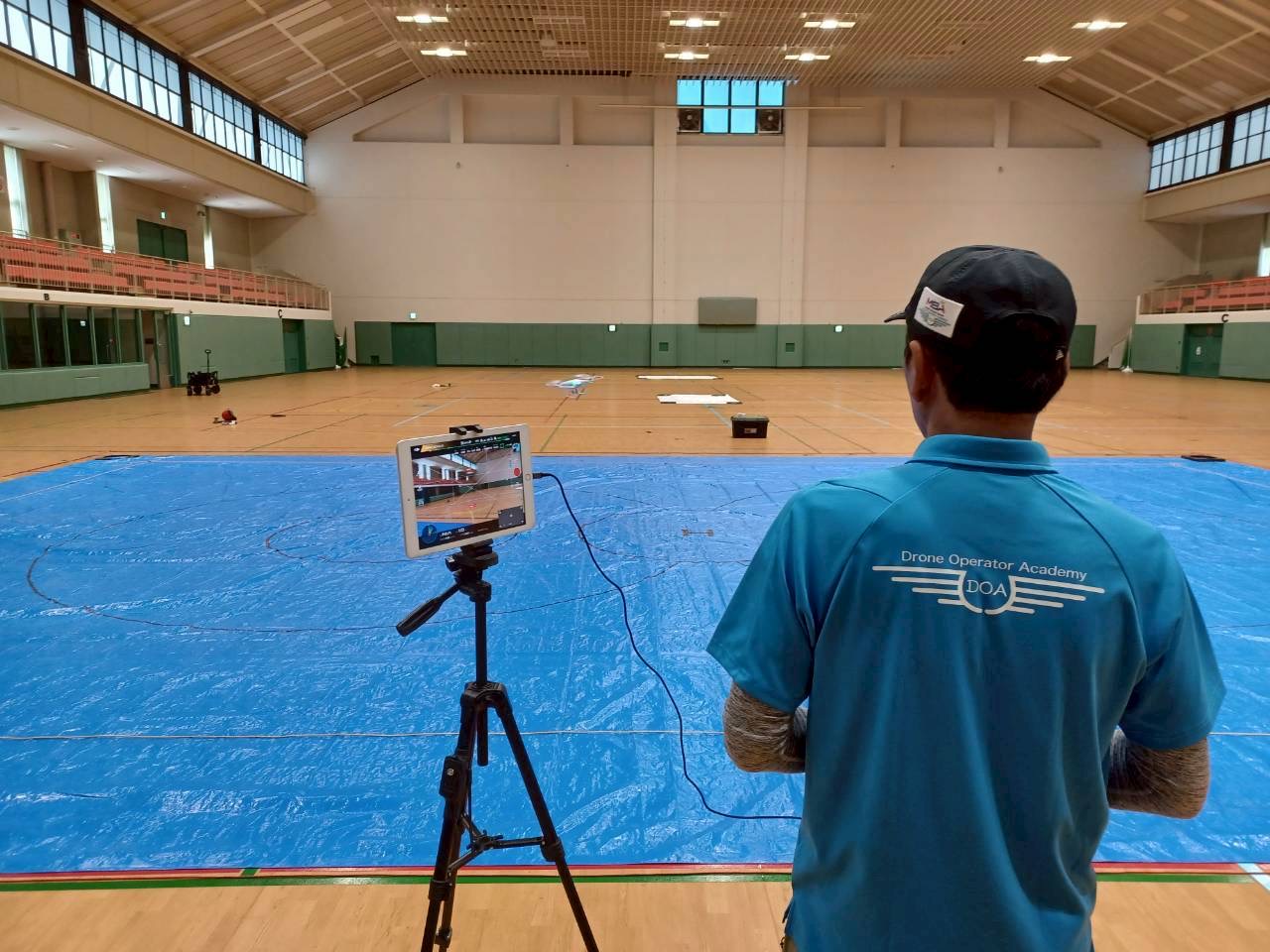 当スクールでは、初めて屋内でのドローン講習および修了審査を行いました。